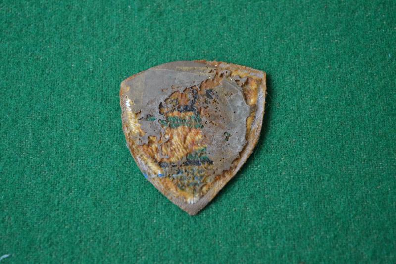 Embroidered badge removed from an album.