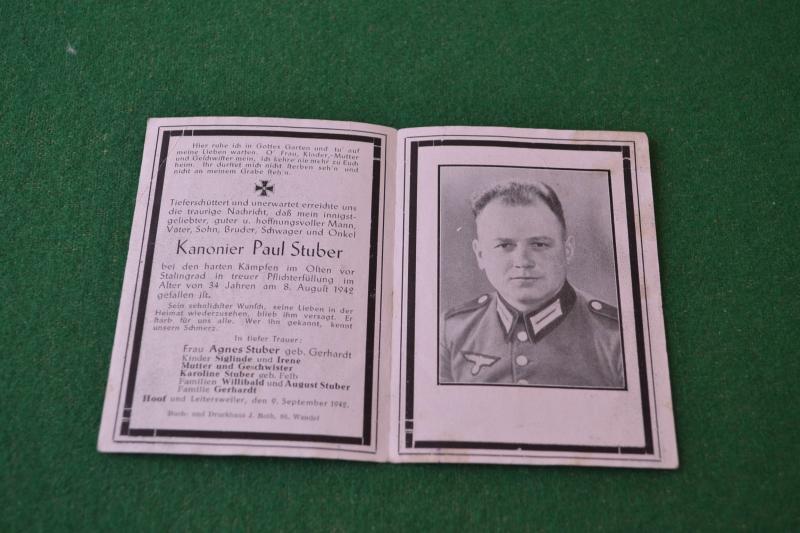 Card for Kanonier Paul Stuber killed 8th August 1942 at Stalingrad.