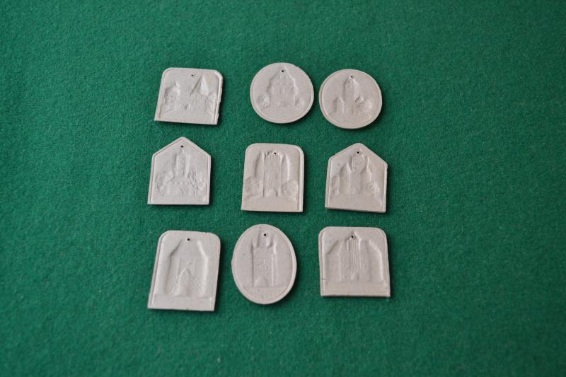 Group of nine card badges that where hung by a piece of thread of famous German City gates, issued June 1942.