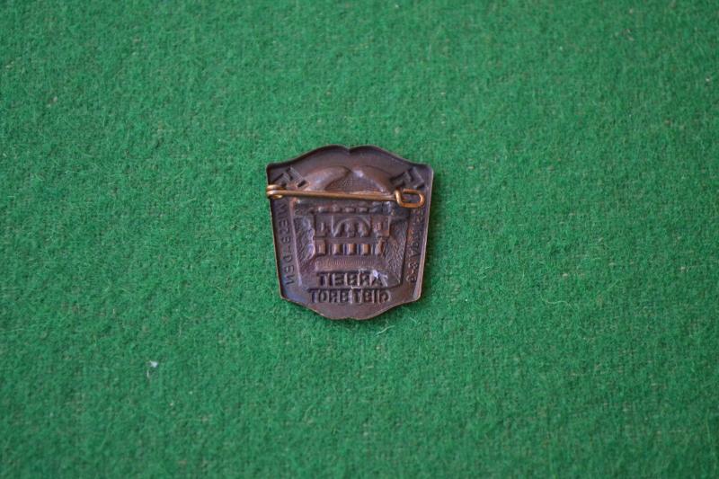 Metal badge proclaiming the worker gives bread in Wiesbaden 1934.