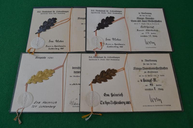 Group of four award booklets to Eva Weber nee Heinrich, dated 1941 and 1942 for Gymnastics.
