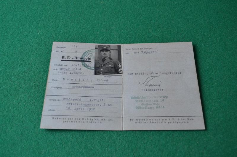 Card ausweis dated 1935 to a man in Abtlg 9/64 Pausa i Vogtl.