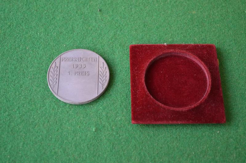 Zinc made 1st class prize which has not been awarded, small size around 50mm across, complete with the case base.