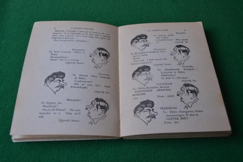 Entitled Mein Rampf, cartoons poking fun at Hitler and his hierarchy and Stalin, no date but early war as it has an advert for tips on the blackout, book in very good condition.