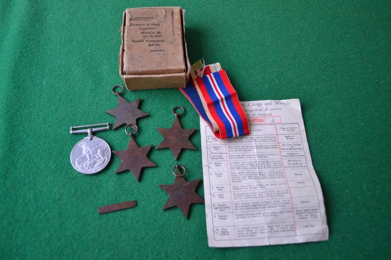 Group of five medals being, 1939/45, Atlantic, Italy, Africa stars, 1939/45 medal and France and Germany bar, complete with box of issue and paper slip.